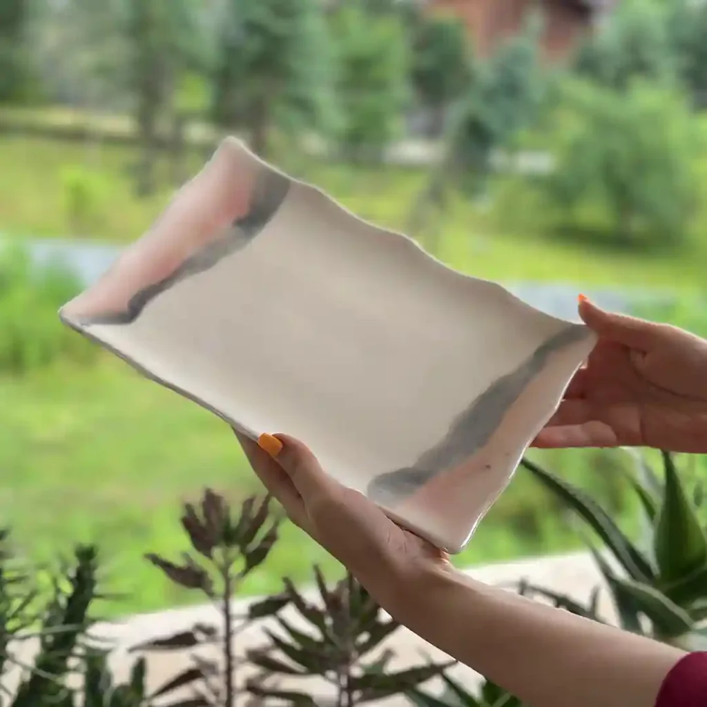 - ویژگیها: طراحی خاص و لبههای موجدار، لعاب نیمهبراق