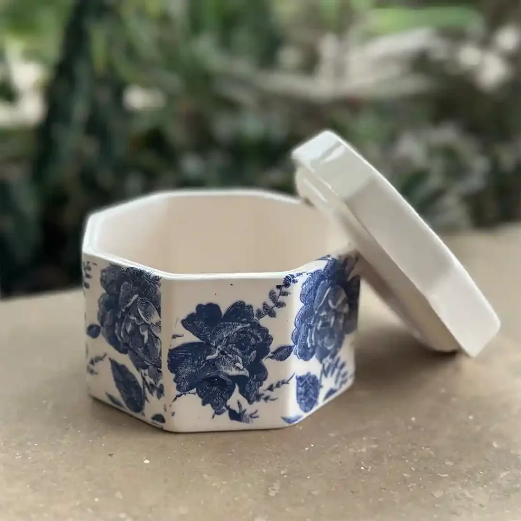 قندان سرامیکی طرح گل فیروزهای، ترکیبی چشمنواز از هنر سنتی و طراحی مدرن است. لعاب شفاف و نقوش آبی گلدار روی بدنه کرمیرنگ، حس نوستالژی و اصالت را به فضای آشپزخانه یا میز پذیرایی شما میآورد. با دو فرم خاص بیضی و ششضلعی، این قندان انتخابی شیک و کاربردی برای علاقهمندان به ظروف خاص و تزیینی است.