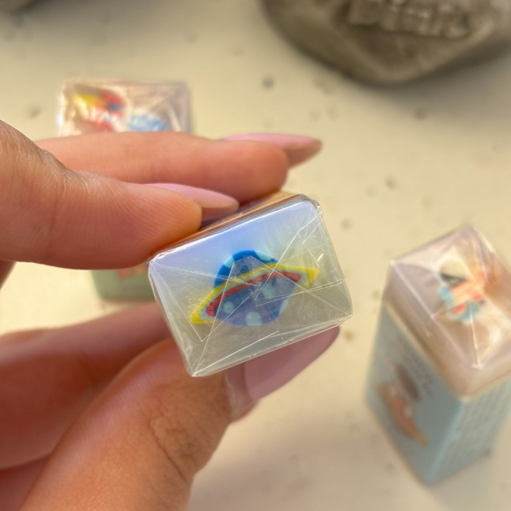 - رنگ بستهبندی: طرحهای متنوع (موشک، بشقاب پرنده، فضانورد)