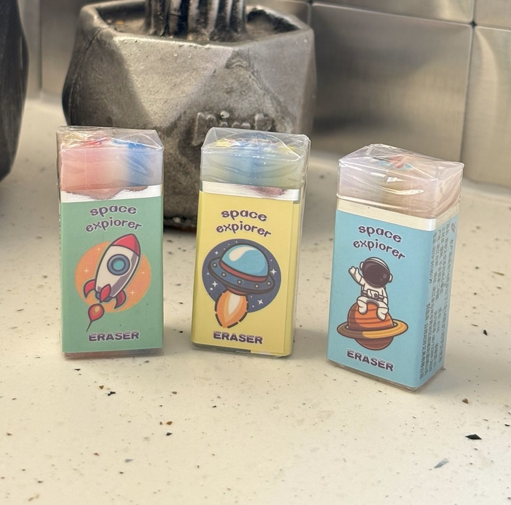 پاککن مغزدار Space Explorer با طراحی فانتزی و الهامگرفته از دنیای فضا، یکی از خاصترین لوازمالتحریرهای موجود است. هر پاککن با طرحهای متنوع موشک، بشقاب پرنده و فضانورد، نهتنها کاربردی است بلکه جلوهای سرگرمکننده و دلنشین به میز کار یا تحصیل شما میبخشد.